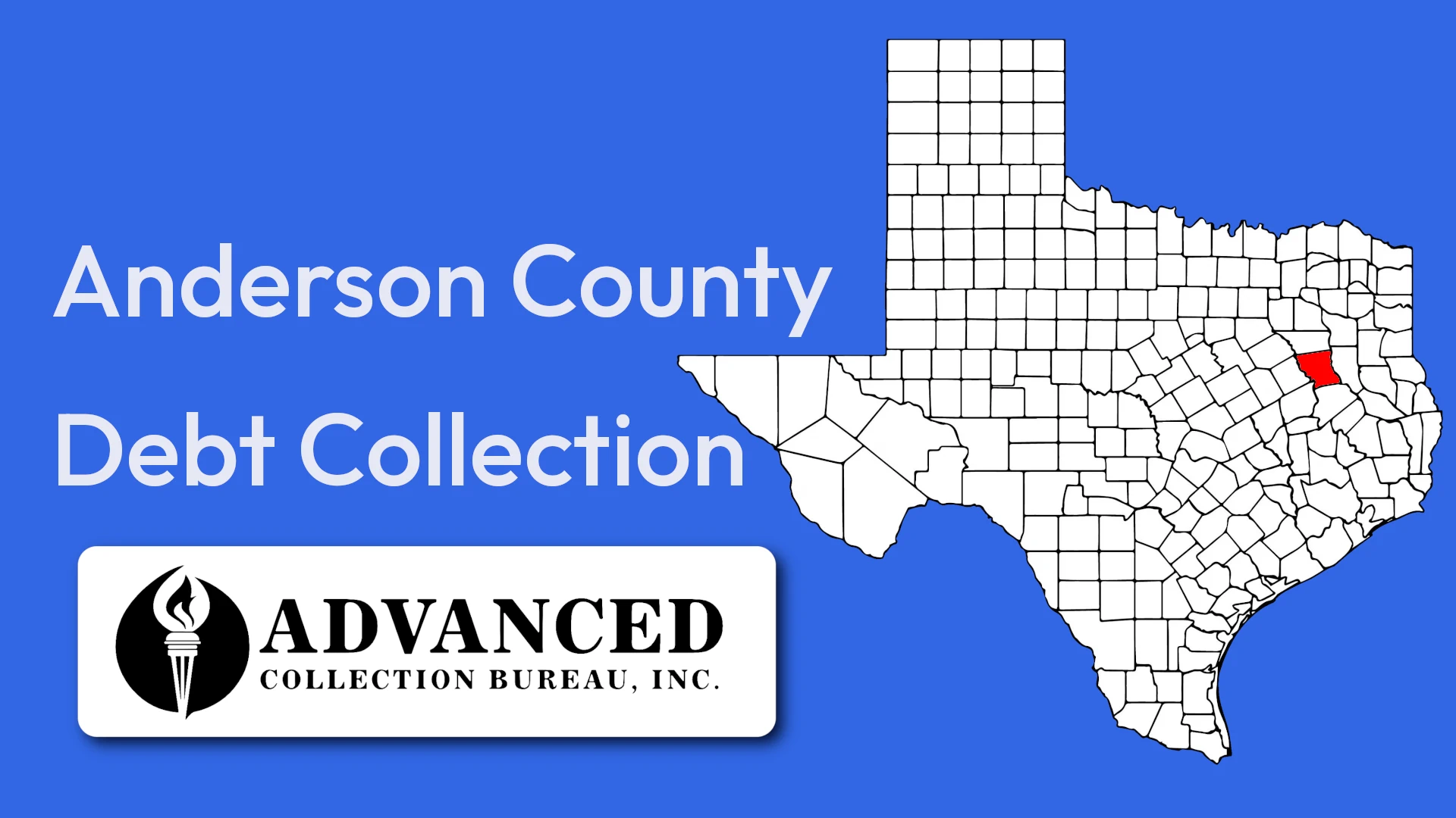 Anderson County sits in the heart of the Piney Woods, where Palestine and the surrounding small towns keep landlords busy with a steady churn of tenants. Advanced Collection Bureau helps property owners across the county recover unpaid rent without the headache of doing it themselves.