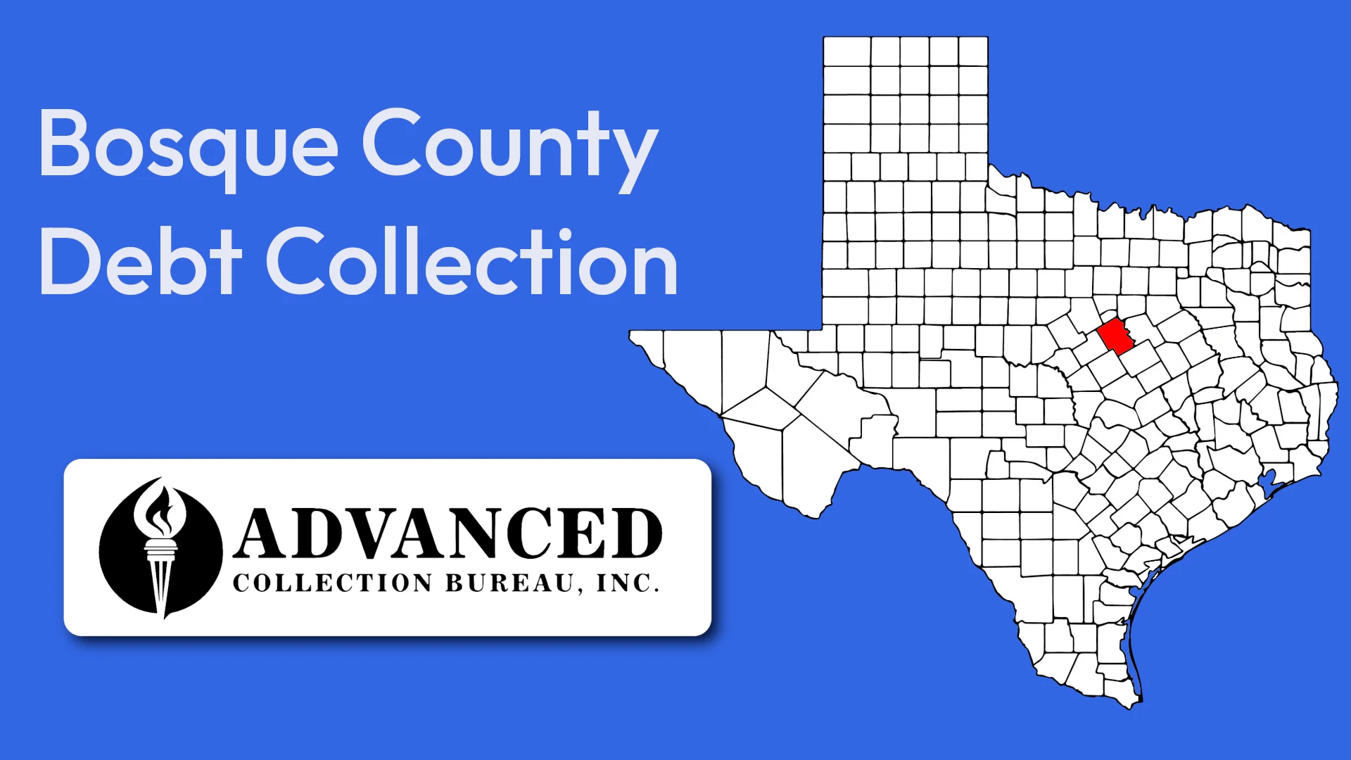 Bosque County sits just northwest of Waco at the "Top of the Hill Country," and while Meridian, Clifton, and Valley Mills aren't huge rental markets, the landlords here still deal with their share of unpaid rent and broken leases. Advanced Collection Bureau works with property owners across the county to recover what tenants leave behind without the hassle of doing it themselves.