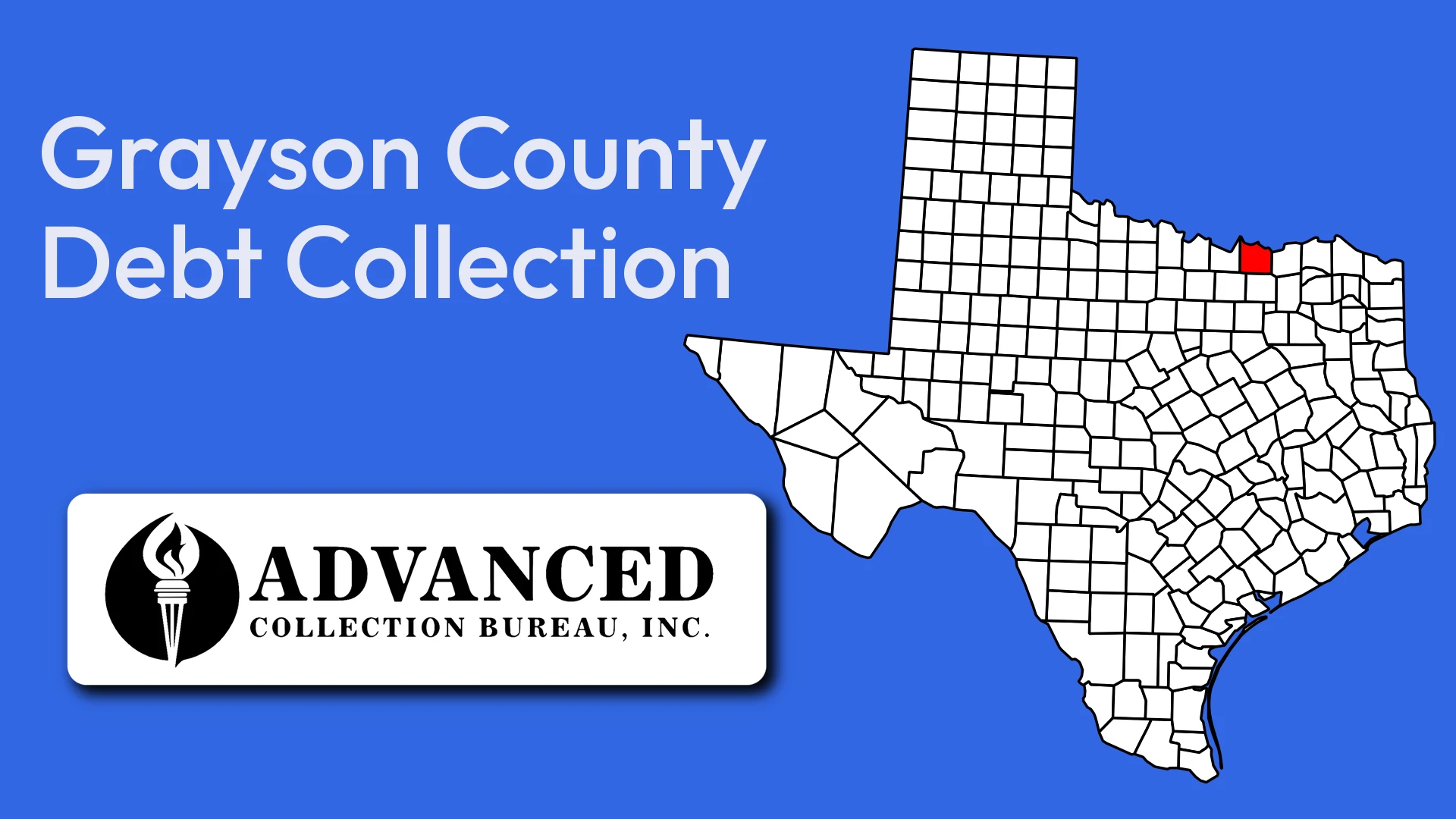 Straddling the Red River border with Oklahoma and anchored by the twin cities of Sherman and Denison, Grayson County has a growing rental market fueled by manufacturing jobs and Lake Texoma tourism. Advanced Collection Bureau helps local landlords recover the unpaid rent that tenants leave behind.