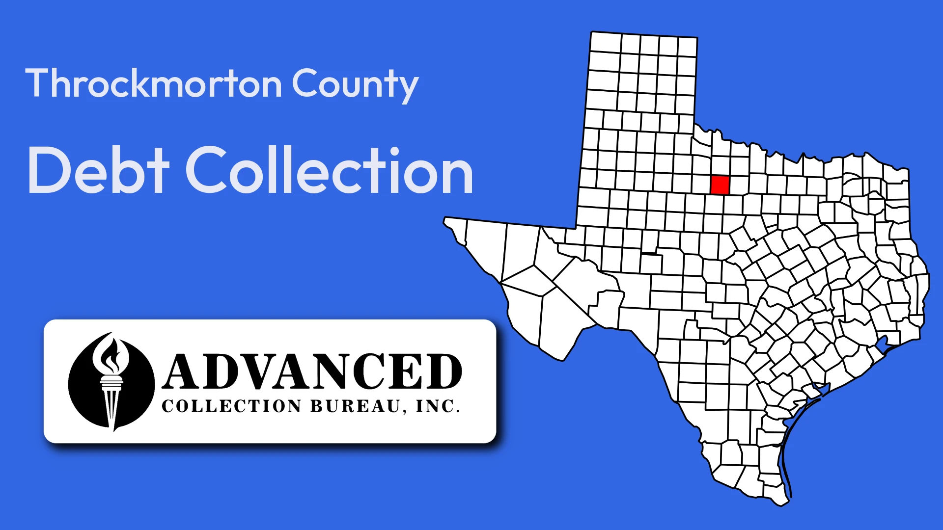 Home to legendary ranches, a sandstone courthouse on the National Register, and some of the best hunting in North Central Texas, Throckmorton County is ranch country through and through, and even here landlords occasionally face tenants who leave without paying. Advanced Collection Bureau recovers unpaid apartment lease and rental debt for Throckmorton-area property owners.