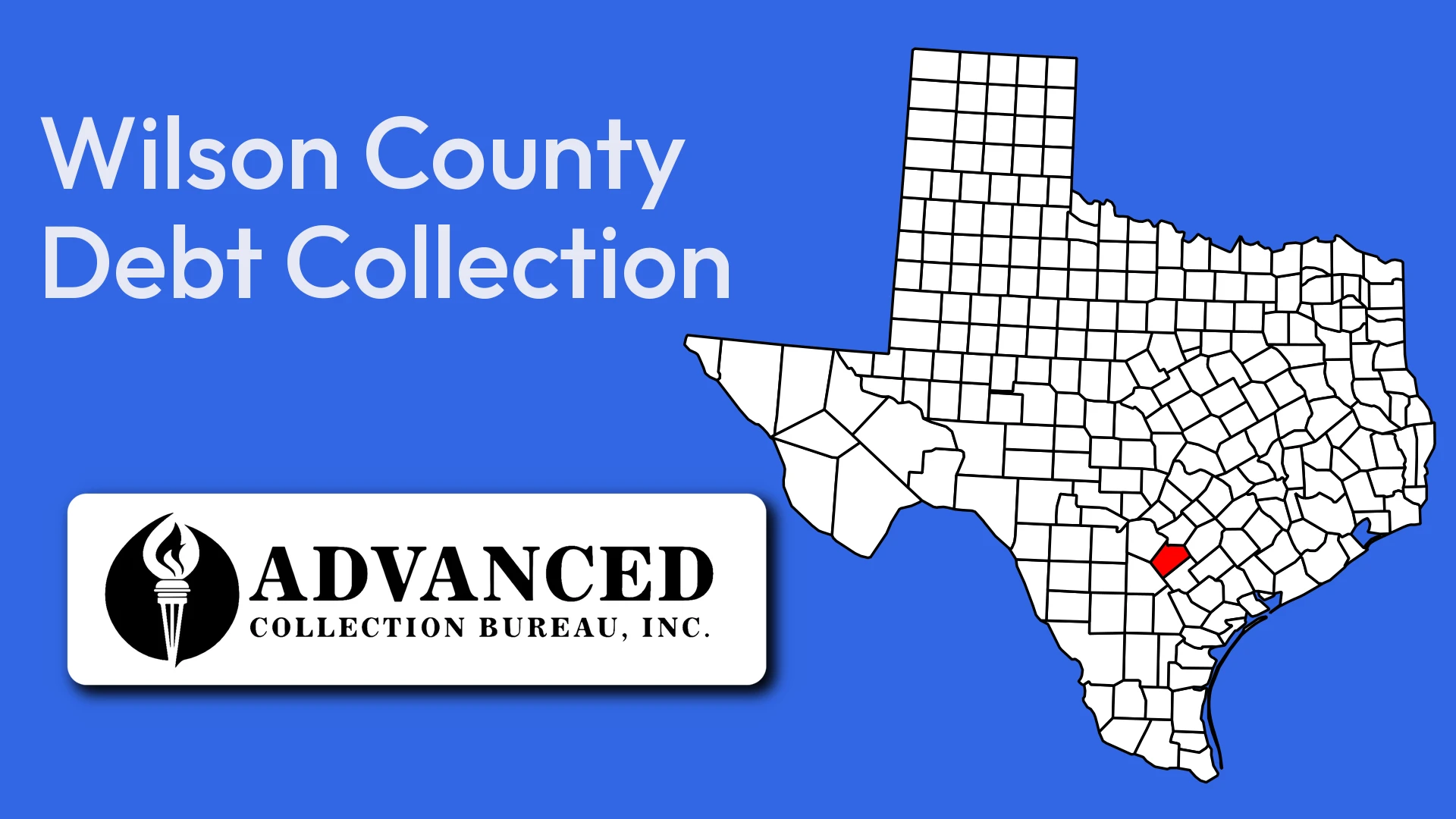 Known as the Peanut Capital of Texas and celebrated each October with a festival that draws over 10,000 visitors, Wilson County is a growing South Texas community just thirty miles southeast of San Antonio where agriculture gives way to suburban expansion. Advanced Collection Bureau recovers unpaid apartment lease and rental debt for Floresville landlords and property managers across Wilson County.
